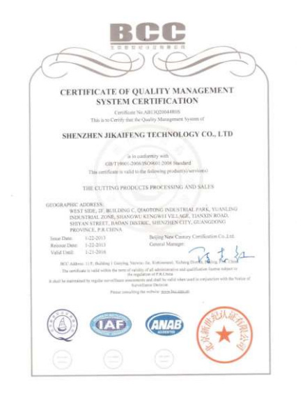 質量管理體系認證證書英文版