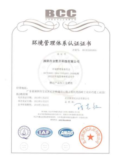 環境管理體系認證證書