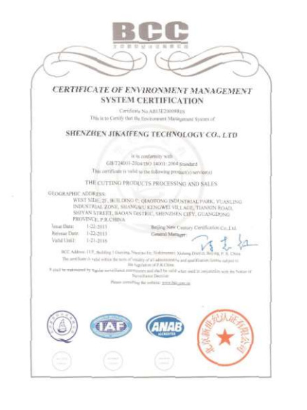 環境管理體系認證證書英文版